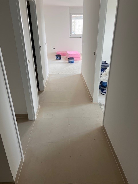 Parallel dazu schreiten die Innenarbeiten planmäßig voran. In den Wohnflächen werden aktuell hochwertige Fliesen verlegt, wobei besonderer Wert auf Präzision, Langlebigkeit und ein apsrechendes Design gelegt wird. Gleichzeitig erfolgt die Installation moderner Sanitäranlagen.